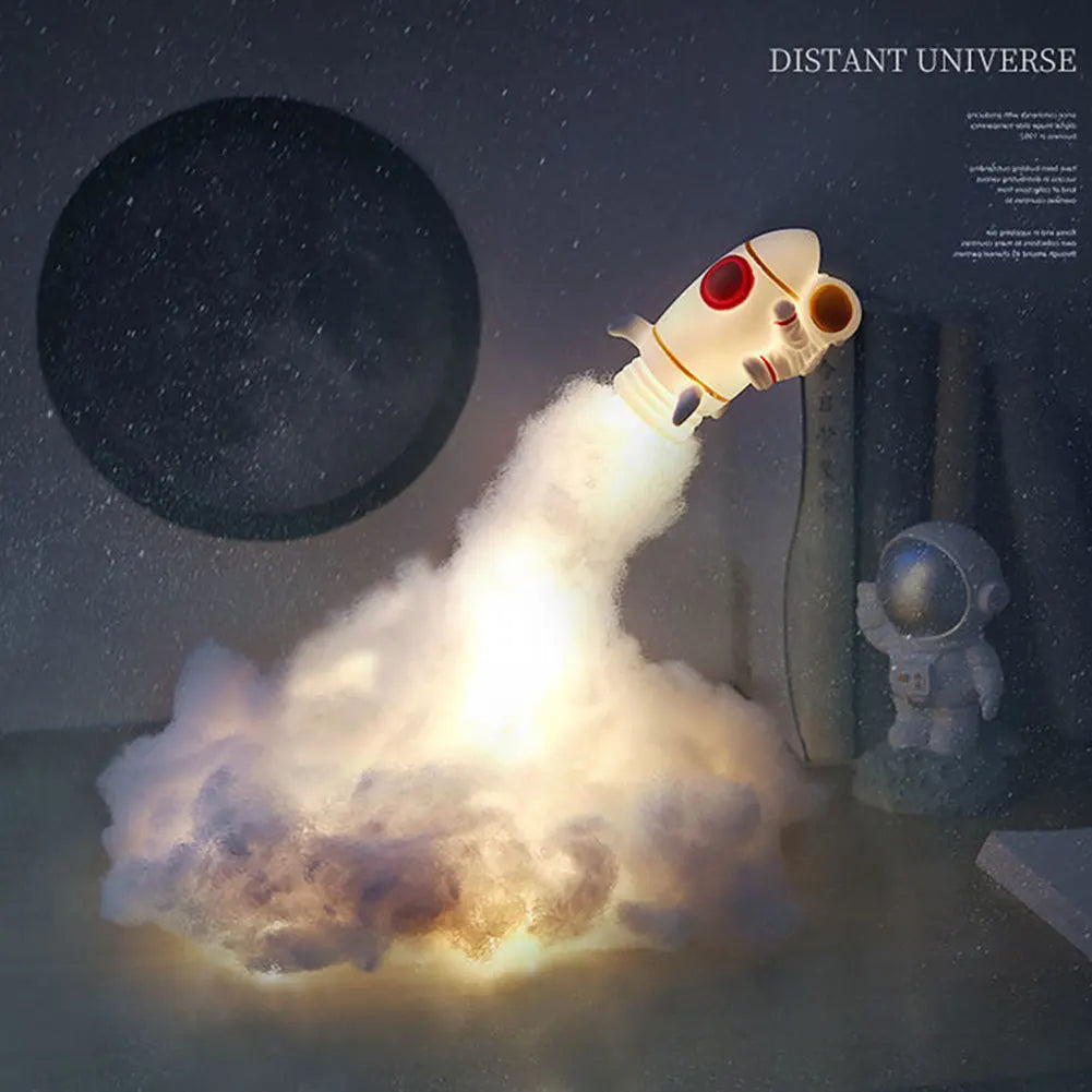 Lampka LED rakieta 3D z astronautą, kolorowe chmury